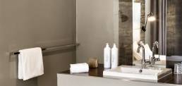 - Open floor plan with designated working area, an openly designed rain shower and a private lavatory