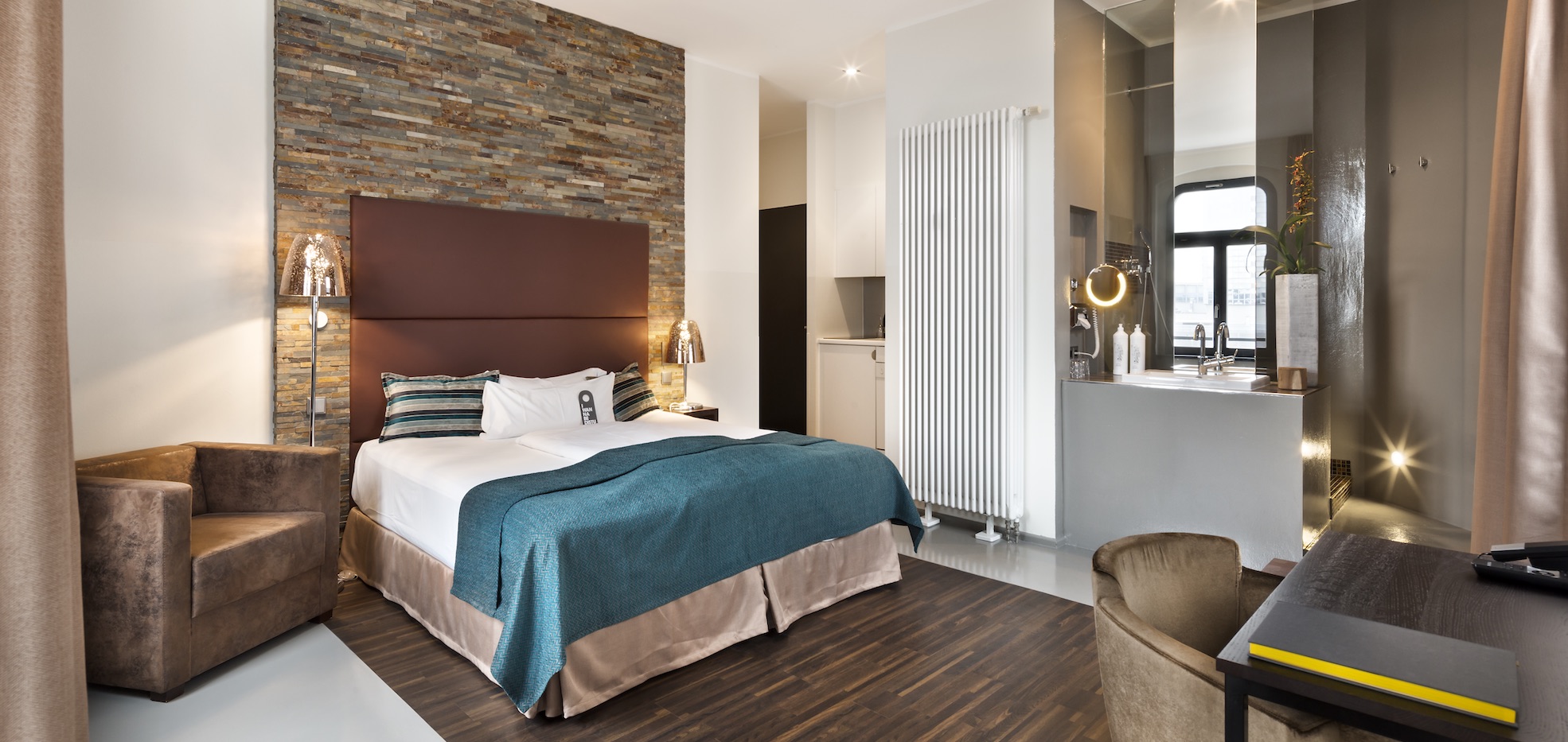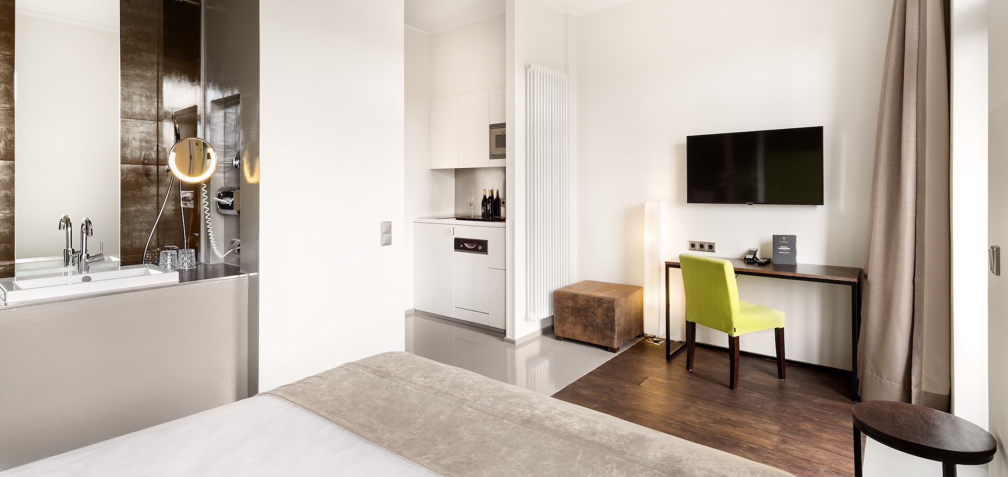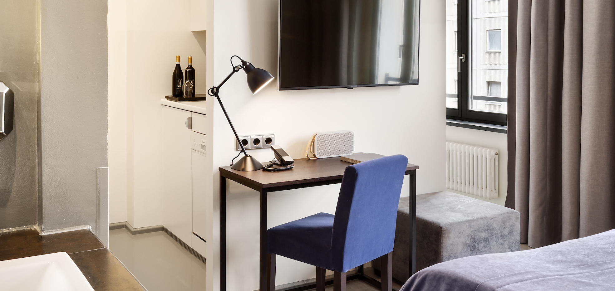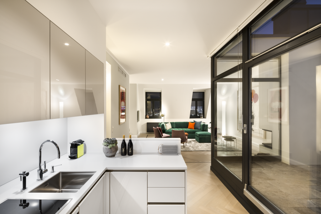Contemporary, spacious, and with its own sauna and fireplace, the 160-square-metre penthouse at Lux Eleven Berlin-Mitte certainly has the wow factor. Located at the top of the 19th century building our Penthouse is quiet and serene, a calming sanctuary from the busy streets below.
