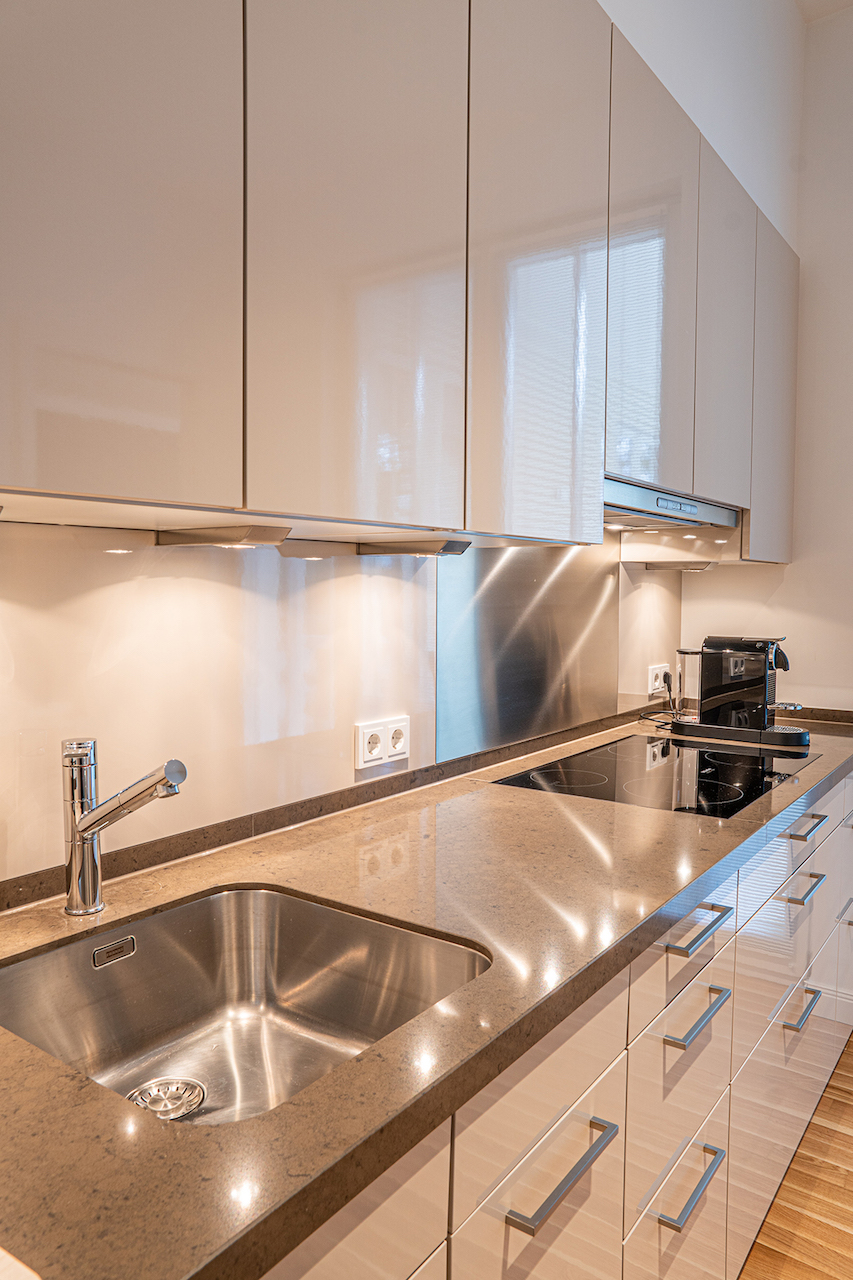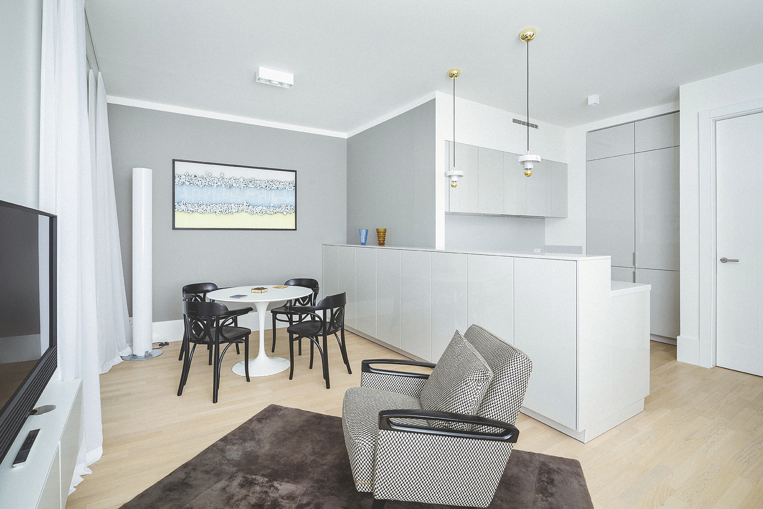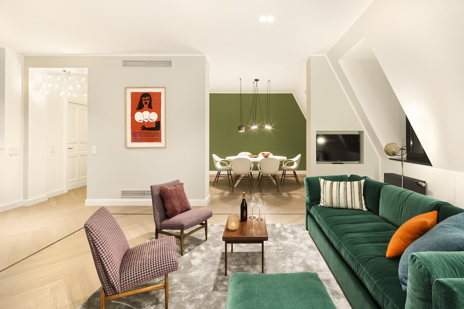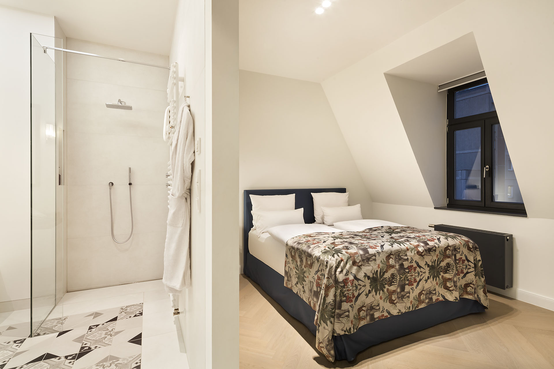 Welcome to this spacious and bright, elegantly designed apartment on the top floor of our Luxeleven Hotel. Its 185 m² boast two bedrooms and two bathrooms, complete with a bathtub and a shower. The open space concept is flooded by daylight and combines living room, dining room, kitchen and a study. For dreamy views, the generous balcony / terrace offers the perfect mix of comfortability and urban landscape.